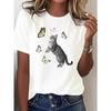 New Women'S Tshirt Funny Watercolor Butterfly Cat Animal Print Tshirt Girls Fashion Summer Female Tshirt White Short Sleeved Top