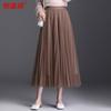 Dwustronna spódnica z siateczki damska plisowana spódnica w długiej sekcji wszechstronna spódnica w kształcie litery A z wysokim stanem na wiosnę i lato cienka spódnica do połowy ciała