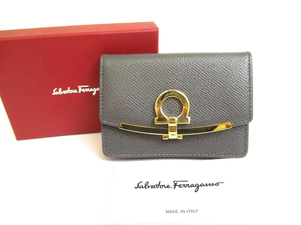 Product : Salvatore Ferragamo Gray Black Leather Business Card Holder #a746