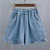 Luźne Szerokie Spodnie Jeansowe z Wysokim Stanem Cienkie Szorty Damskie