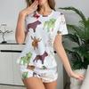 Letni uroczy kreskówkowy nadruk pandy Cienki zestaw piżamy dla kobiet Odzież domowa Seksowny luźny top z krótkim rękawem i szorty Zestawy 2-częściowe Pijamy Odzież do spania