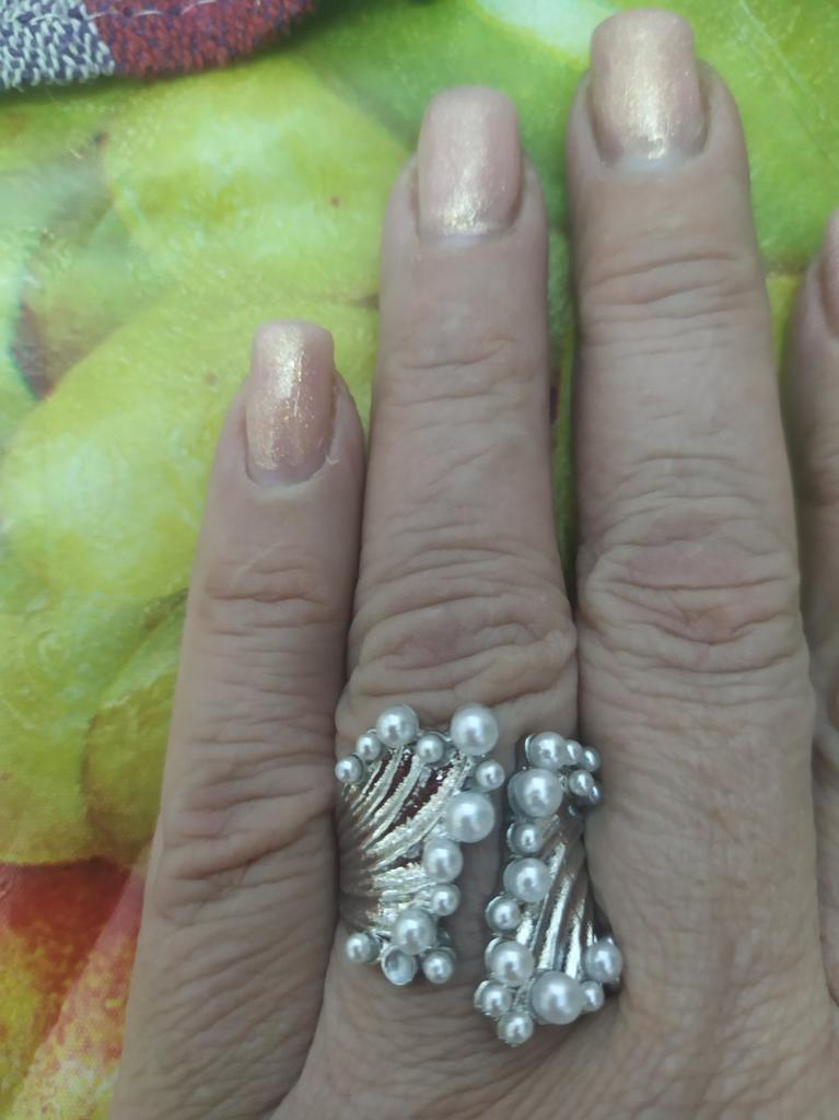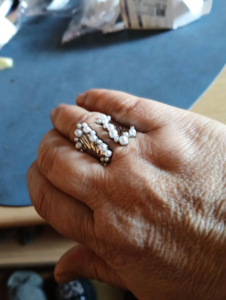 Jedna perła odpadła, gdy wyjmowałam z opakowania. Rozmiar pierścionka to 17,5. Jeśli go rozginiesz, to ostrożnie, żeby nie posypały się pozostałe perły.