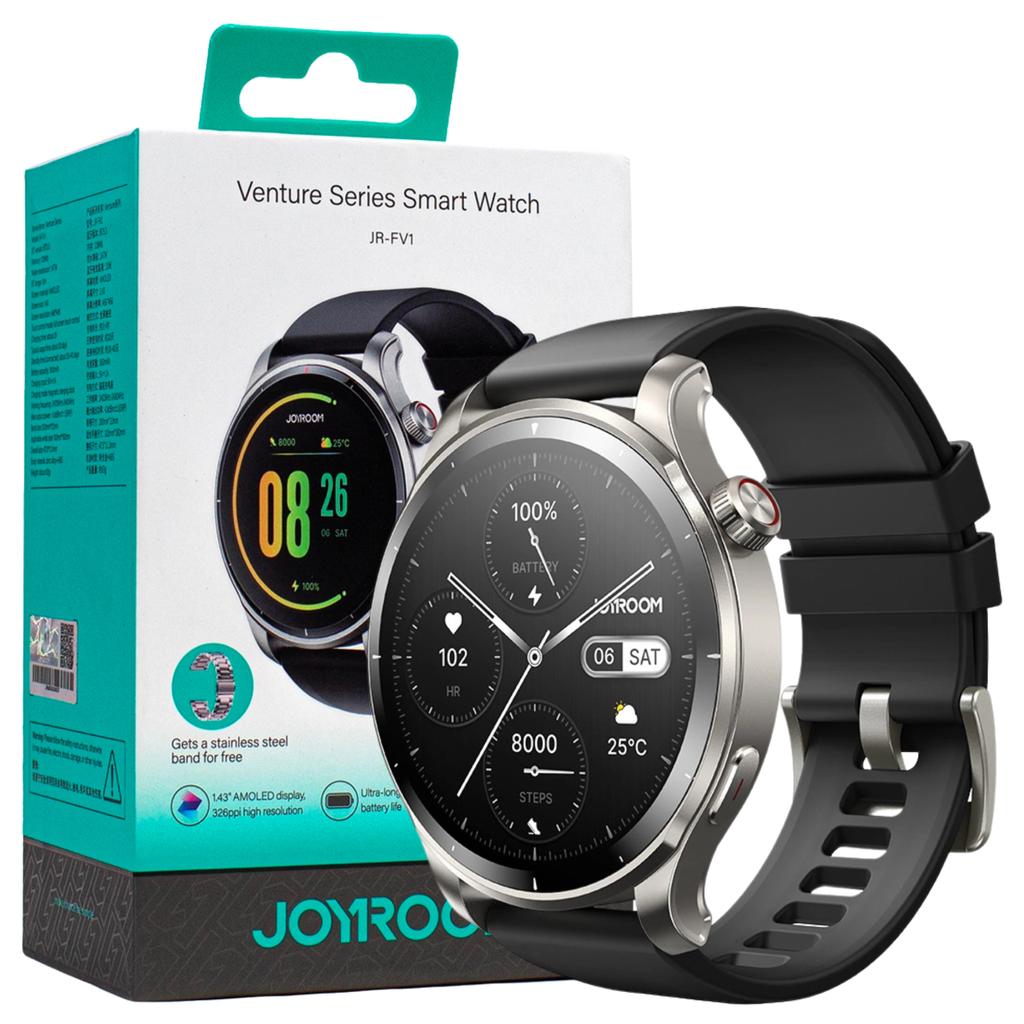 Smartwatch Joyroom JR-FV1 (czarny) Poszukujesz niezawodnego smartwatcha, który będzie Ci towarzyszył w codziennych aktywnościach? Joyroom JR-FV1 to doskonały wybór! Wyposażony w wyświetlacz AMOLED o przekątnej 1,43” zapewnia niesamowitą jakość obrazu nawet w słoneczne dni. Oferuje ponad 110 trybów sportowych oraz wiele praktycznych funkcji monitorujących zdrowie. Jest wodoodporny na poziomie 1 ATM, a jego czas pracy sięga nawet 20 dni.