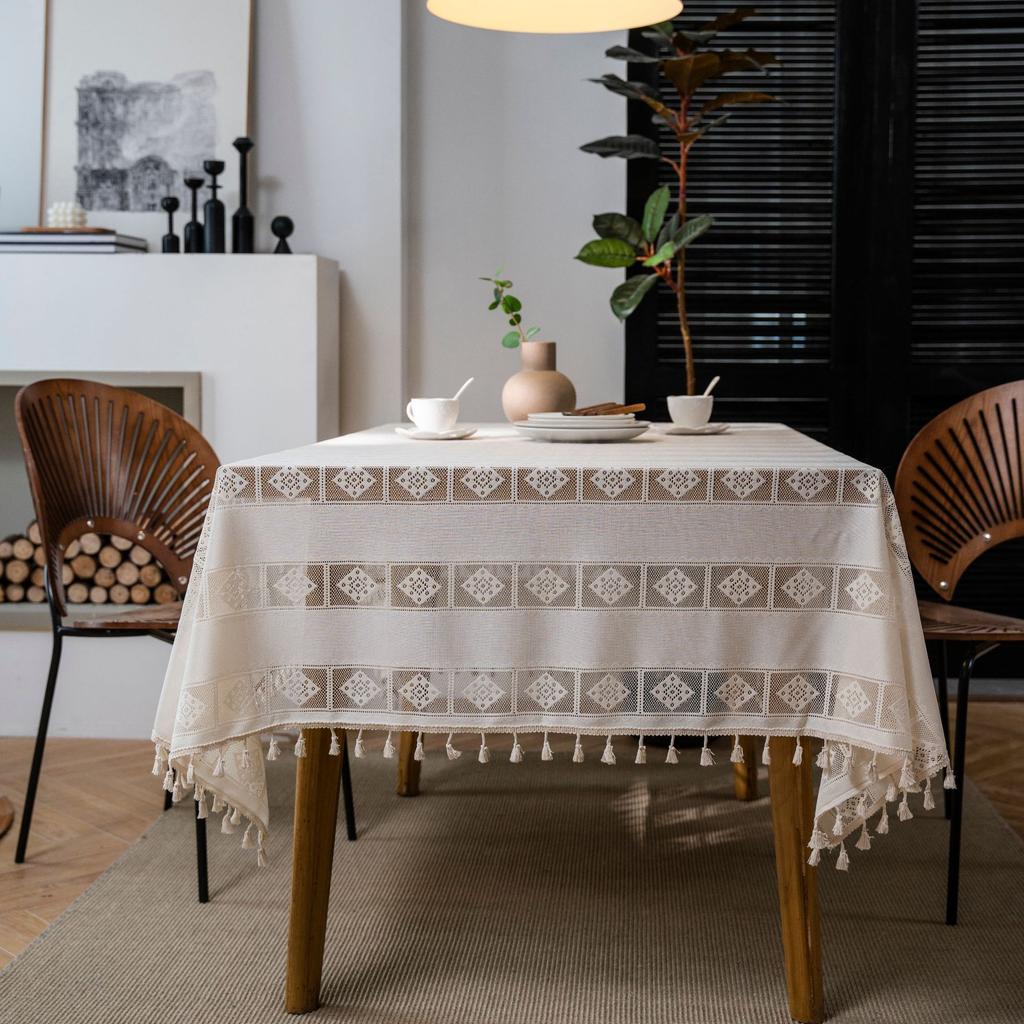Stary rustykalny obrus - Biały koronkowy wzór Prostokątny pokrowiec na stół, Maszynowo wykonany materiał samoprzylepny na wesela, imprezy, wystrój domu, jadalnię, kemping