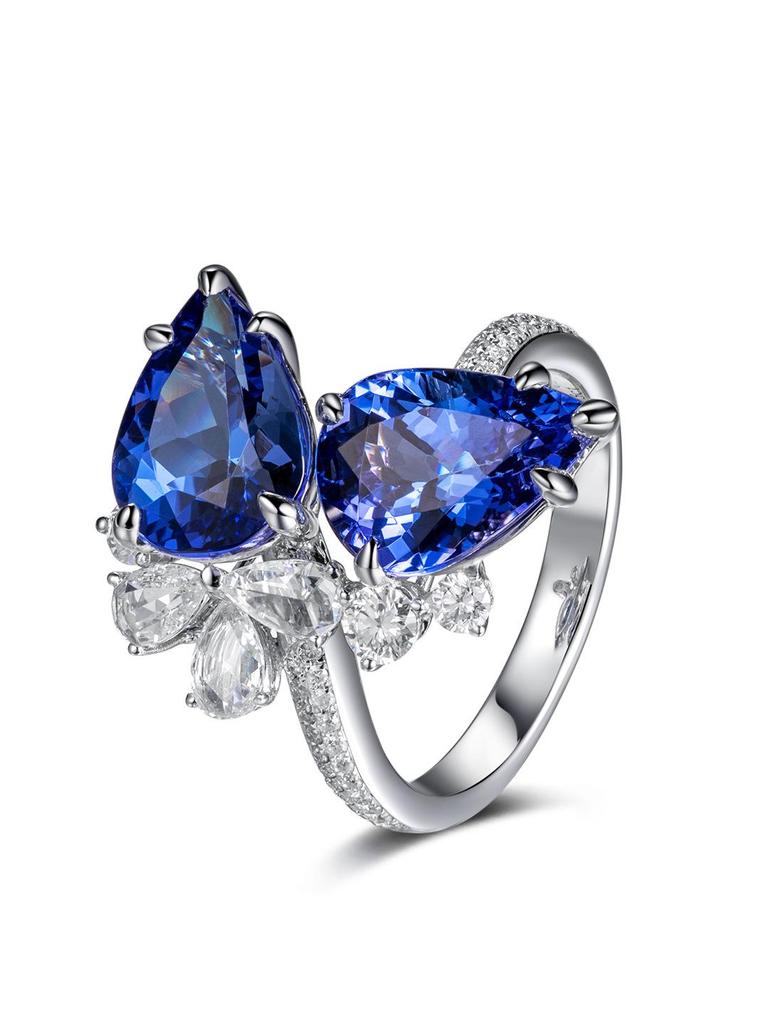 Pierścionek otwarty dla kobiet z kamieniem szlachetnym w kolorze tanzańskiego błękitu, w kształcie gruszki, symulowany szafir