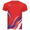 Li Ning Seria Badmintonowa Blok Kolorystyczny Oddychający Sportowy T-shirt z Krótkim Rękawem Unisex Top Czerwony Cynobrowy AAYU129-3