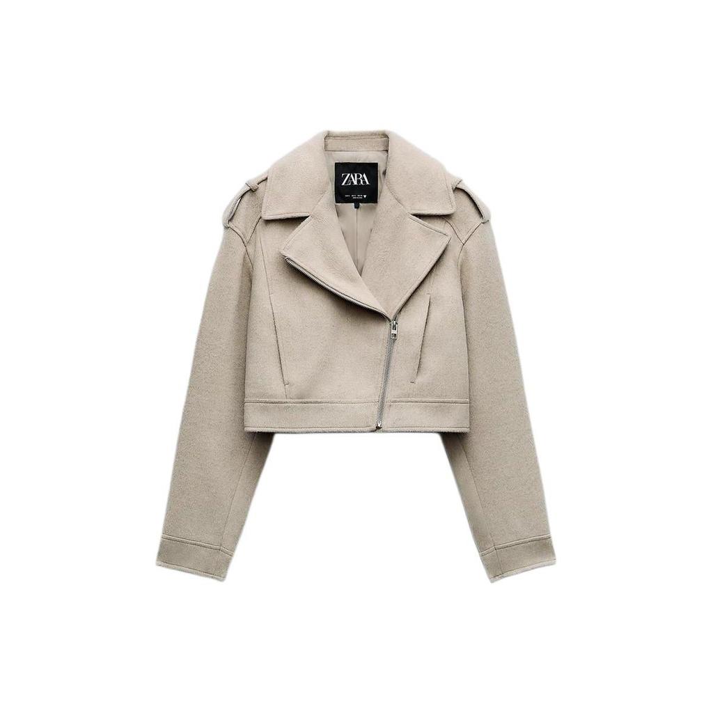 Zara Jednokolorowa marynarka z kołnierzem, zapinana na zamek, z krótkim rękawem, kurtki damskie, jasnobrązowo-żółta 1255710-708