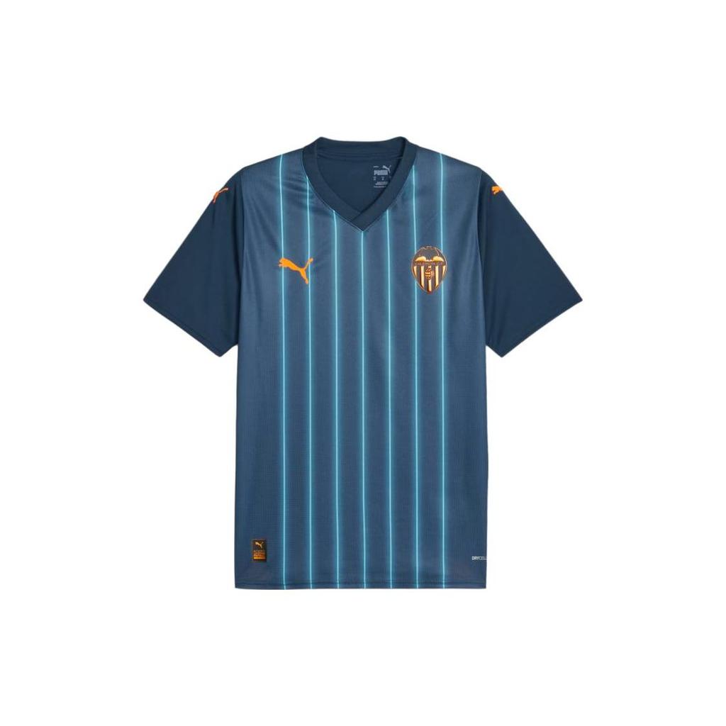 Puma Striped Logo Print V-Neck Short Sleeve T-Shirt Women Tops Ocean-Blue 770301-06