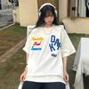 High Street Dopamine Letter Towel Embroidered Round Neck Large Size Top Summer Loose Casual Large T-Shirt Women