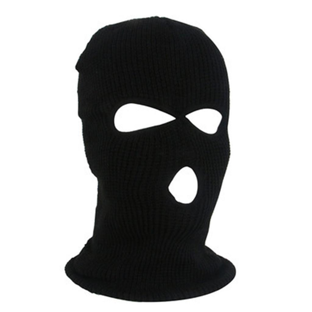 3 Otwory Pełna Osłona Twarzy Wełniana Dzianinowa Osłona Głowy Zimowa Czapka Narciarska Nakrycie Głowy Czarna