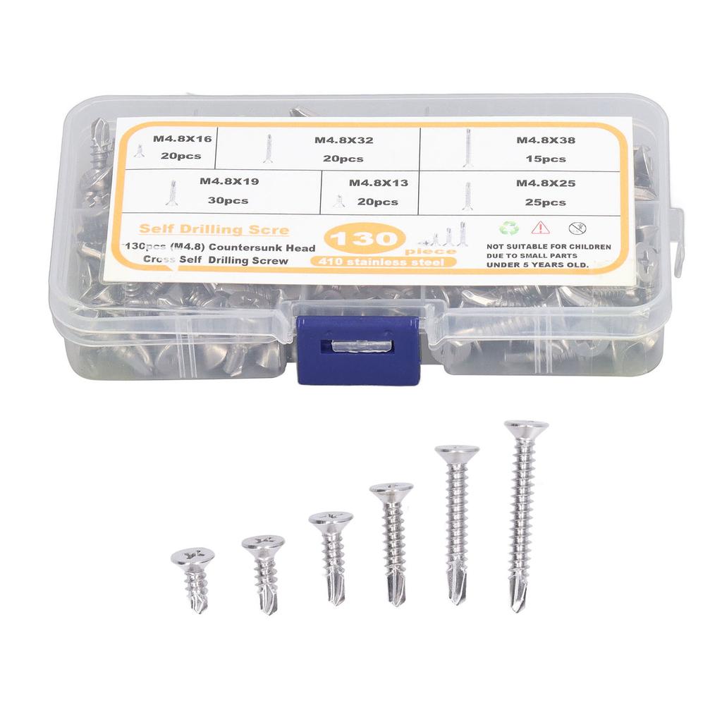 130 SZTUK Śruba Krzyżakowa z Płaskim Łbem Stal Nierdzewna M4.8 Odporne na Rdzę Wkręty Samowiercące do Włókna Szklanego