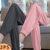 Women's Spring and Summer Solid Colour Drawstring Elastic Waist Ice Silk Casual Sweatpants Two Casual Lantern Trousers
