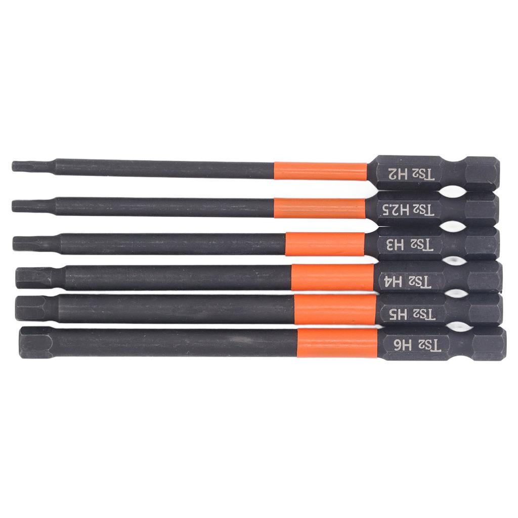 6 x Wiertło z kluczem sześciokątnym [Różne rozmiary] Ten zestaw wierteł występuje w rozmiarach H2, H2.5, H3, H4, H5 i H6, aby sprostać różnym potrzebom wkręcania, ze standardowym łbem sześciokątnym, może być używany z wkrętarkami elektrycznymi, wkrętakami ręcznymi, wiertarkami elektrycznymi, wiertarkami pneumatycznymi.