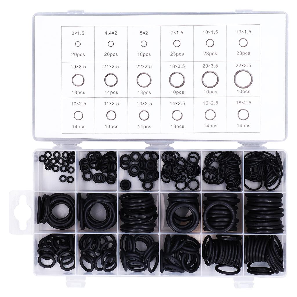 279 x Zestaw O-ringów z asortymentemMATERIAŁ GUMOWY: Wykonane z materiału gumowego, zapobiegające elektryzowaniu się, odporne na olej i promieniowanie UV, odporne na ciepło i ścieranie, trwałe, długa żywotność