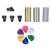1 x Stalowy slide do gitary1 x Mosiężny slide do gitary6 x Kostki gitarowe (losowy kolor)