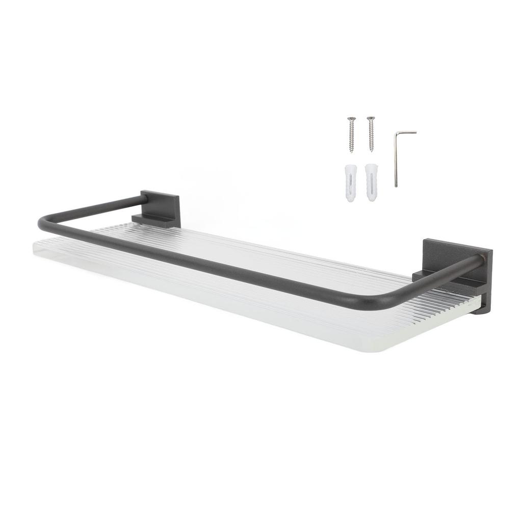 Półka Łazienkowa Ścienna 30cm Aluminium Kosmiczne Akryl Wieszak na Ręczniki Stojak do Przechowywania Łazienkowego Szary