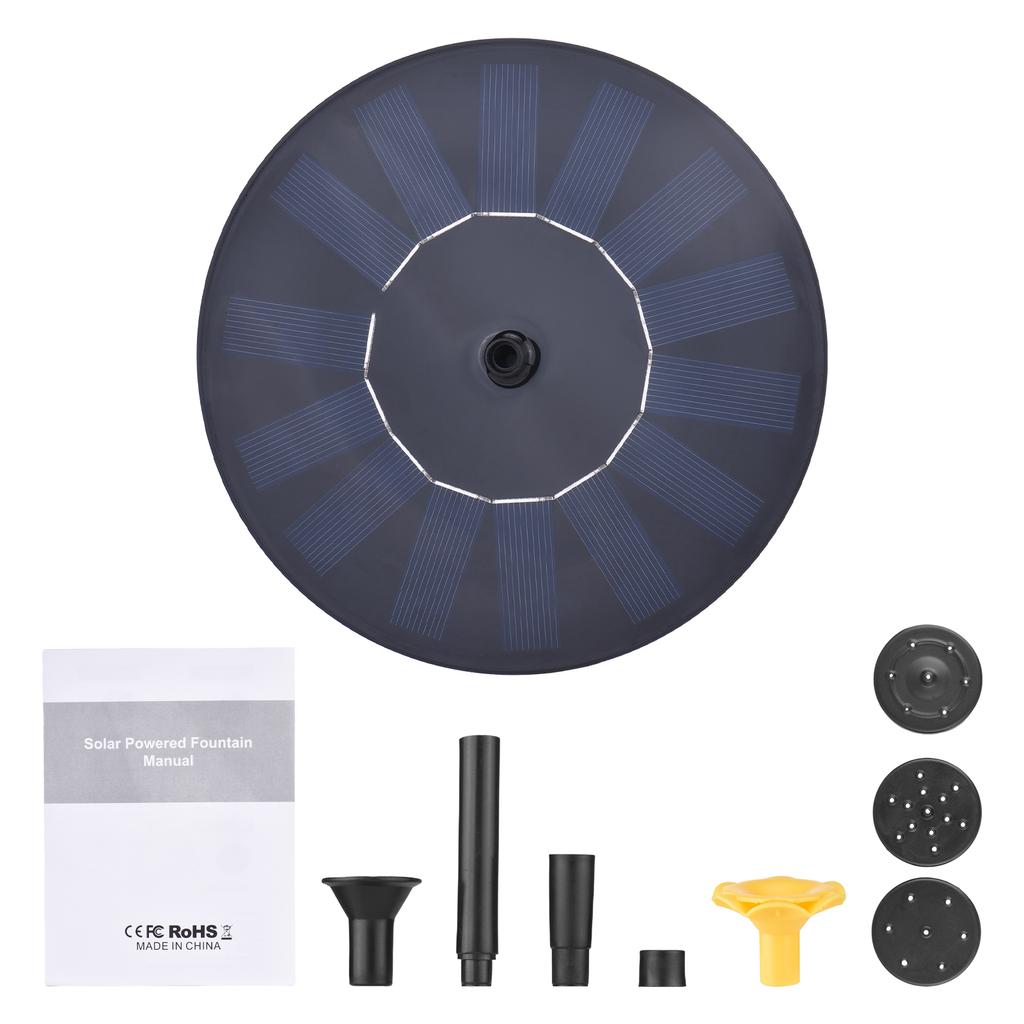 Ulepszona pompa fontanny solarnej Panel szklany Regulowana wysokość do kąpieli dla ptaków Ogród Basen Staw 16cm/6.3in
