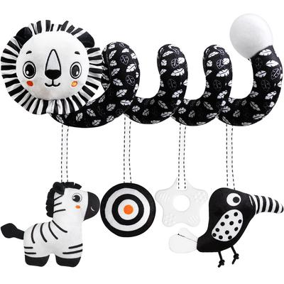 Czarno-biały lew spirala zabawka do wózka fotelika samochodowego, spirala pluszowa do zawieszenia na łóżeczku dziecięcym