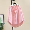 Damska Koszula Casual Guziki Bawełna Biała Wiosna Długi Rękaw Jednolity Luźny Bluzki Biuro Eleganckie Top