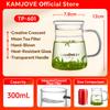 KAMJOVE Crescent Heat-resistant Glass Water Cup with Handle Tea Cup Tea Separation Cup 300ml Green Tea Brewing Cup Kettle Office