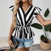 JKASHDK Modne damskie bluzki i koszule w stylu Casual, letnia, wiosenna w paski, z krótkim rękawem i dekoltem w kształcie litery V