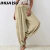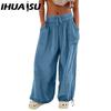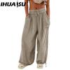 IHUASU 8 Kolorów Damskie Spodnie z Wysokim Elastycznym Stanem Szerokie Nogawki Luźne Spodnie Głęboki Klin Plisowane Kieszenie na Kostkach Jednolity Kolor Miękkie Damskie Spodnie Casualowe