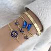 Biżuteria Transgraniczna Niebieski Motyl Inkrustowany Cyrkoniami Ażurowa Damska Bransoletka Geometryczne Otwarcie Czteroczęściowy Zestaw Bransoletek