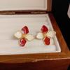 Tide Four-Leaf Clover Drip Oil Earrings with Luoshen Flower Design