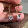 Huitan Luksusowe Kolczyki Wiszące Solitaire Princess z Cyrkoniami Sześciennymi dla Kobiet Proste Eleganckie Dodatki Biżuteria Modowa na Wesele/Przyjęcie