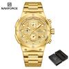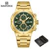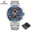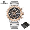 Naviforce Męski Zegarek Kwarcowy Wskazówkowy Stoper Chronograf Wodoodporny Pasek Ze Stali Nierdzewnej Kalendarz Luminescencyjny Męski Chłopięcy Modny Zegarek Casualowy NF8072