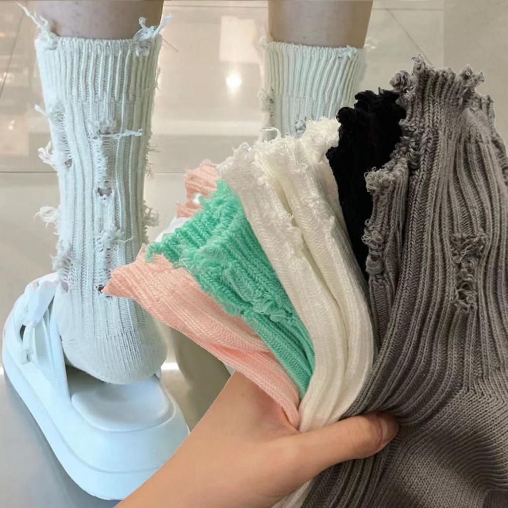 Broken Hole Harajuku Socks Women Hip-Hop Skateboard Beggar Cotton Socks Medium Tube Knitted Street Stocking Trendy Ripped Sox
