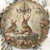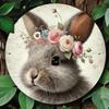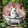 Vintage Królik z Filiżanką Kawy Okrągły Drewniany Znak, 18cm Retro Dekoracja Ścienna do Domu