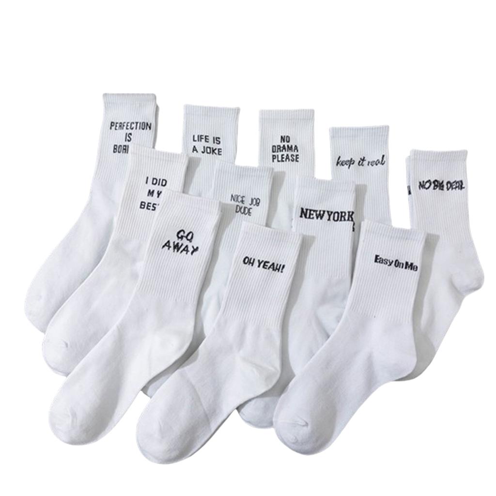 5/10 par losowych męskich skarpetek za kostkę, białe z wzorem liter, modne, unikalne, zabawne, odprowadzające wilgoć, rekomendacja na prezent