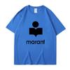 Nowa Letnia Damska Koszulka z Krótkim Rękawem z Nadrukiem 2D z Napisem Marant, Okrągłym Dekoltem, Casualowa, Personalizowana