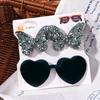 Lovely Sparkling Butterfly Hair Clip Hair Accessories Glasses Set Fashion Wave Point Kids Hairgripes Love Glasses Girls Headwear