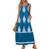 Damska Letnia Moda Sukienka Plażowa Bez Rękawów z Okrągłym Dekoltem Sukienki w Stylu Vintage z Nadrukiem