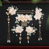 5. Elegancki zestaw spinek do włosów w stylu chińskim: Ten zestaw wsuwek, grzebienia do włosów i klipsa do włosów został zaprojektowany, aby uzupełniać strój kobiet i dziewcząt, oferując klasyczny, ale stylowy akcent, który bez wysiłku podkreśla każdy strój, czyniąc go niezbędnym dodatkiem.