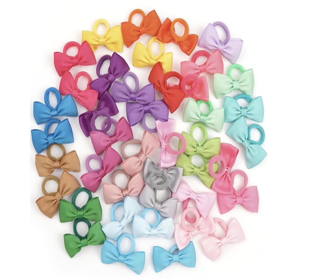 40 colors hair ties.A total of 80pcs/40pairs. 40pcs/20pairs Your baby can match each outfits with different color hair bows ties every dayThe bows is made of high quality durable grosgrain ribbon and it is glued on the durable elastic ties steadily.they can stay very well and don't slide out.