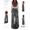 Damskie jeansy vintage z efektem rozpryskującej się farby, postarzane, z szerokimi nogawkami rozszerzanymi ku dołowi - wysoki stan, wyszczuplające, z drapowaniem, na wiosnę lato