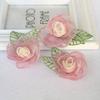 10Pcs 5.5CM Organza Chiffon Fabric Artificial Flower With Leaves Wedding Dress Decoration Home Accessories DIY Fake Flowers