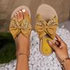 Nowe Letnie Beżowe Klapki Damskie z Kwiatem, Modne Jednokolorowe Klapki Domowe i Plażowe z Beżowym Kwiatem i Kokardą