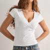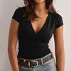 Letnia koszulka Y2K Spice Girls z dekoltem w serek Damska dopasowana z krótkim rękawem Jednolita kolorowa Modny top