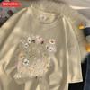 Women'S T-Shirts Beautiful Spring Flower Clusters Printed Short Sleeve O-Neck Breathable Summer Trend Female Clothes