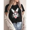 Modny Różowy Królik Puszczający Bańki Damski T-shirt Casual z Krótkim Rękawem Streetowy Damski