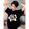 Czarny Letni Damski T-shirt z Krótkim Rękawem Unikalne Nadrukowane Bluzki z Krótkim Rękawem Luźny Casualowy Okrągły Dekolt Damski Pulower