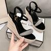 New fashion suede rhinestone waterproof table stiletto buckle super high heel women's shoes sandals hemp rope shoes