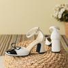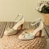 Sandały z plecionym przodem, mała klamra w kształcie kwiatka, gruba podeszwa, przód torebki, damskie letnie, na wysokim obcasie, buty Mary Jane