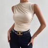 Najlepiej sprzedający się damski top bez rękawów z półwysokim kołnierzem i prążkowanym wzorem