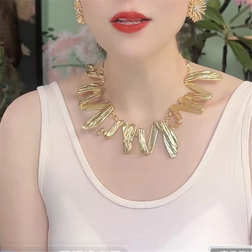 Tooxika Exaggerated Personality Metal Wave Geometric Necklace Simple Temperament Celebrity Style Fashion Collarbone Chain