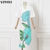 VONDA Summer Women V Neck Half Sleeve Floral Print Back Lace-up Casual Long Dress